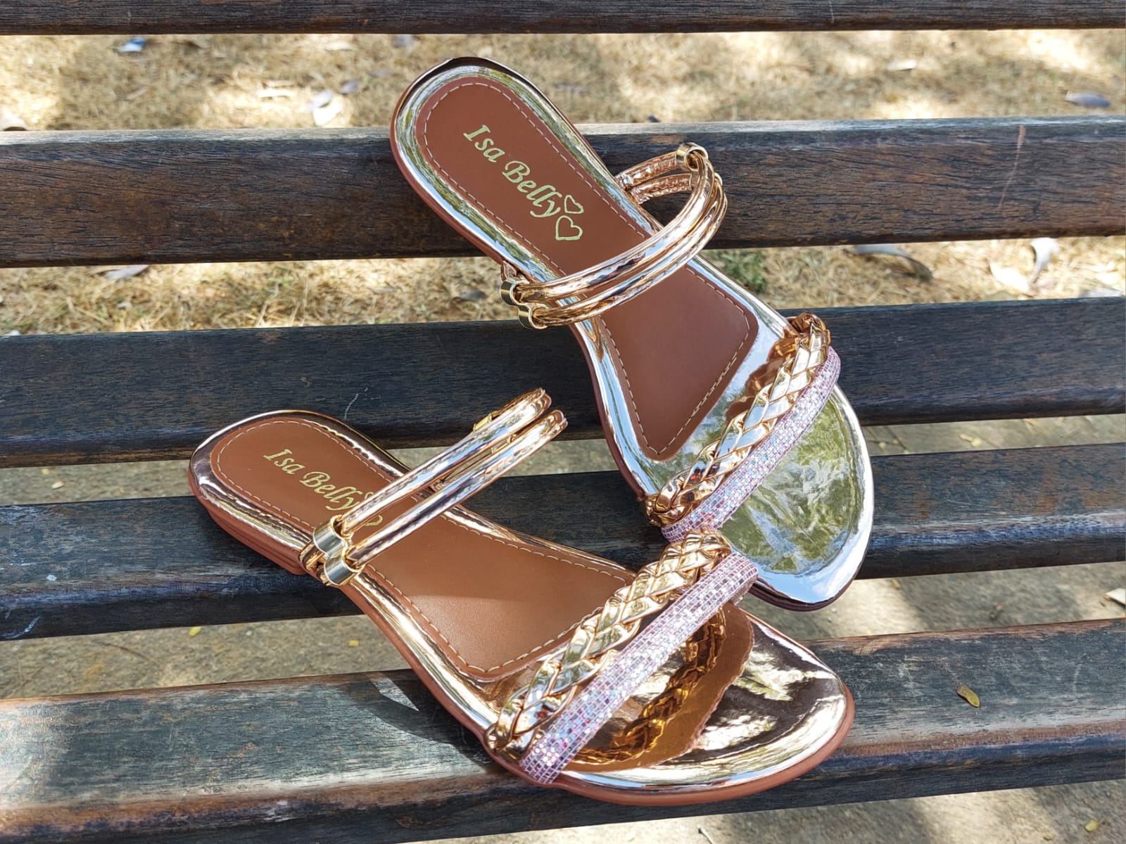 Sandália Rasteira No Atacado Feminina com Glitter - 2413 Bronze