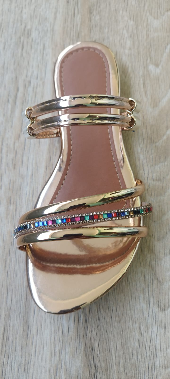 Sandália Rasteira Feminina 2 em 1 no Atacado com strass pedrinha colorida