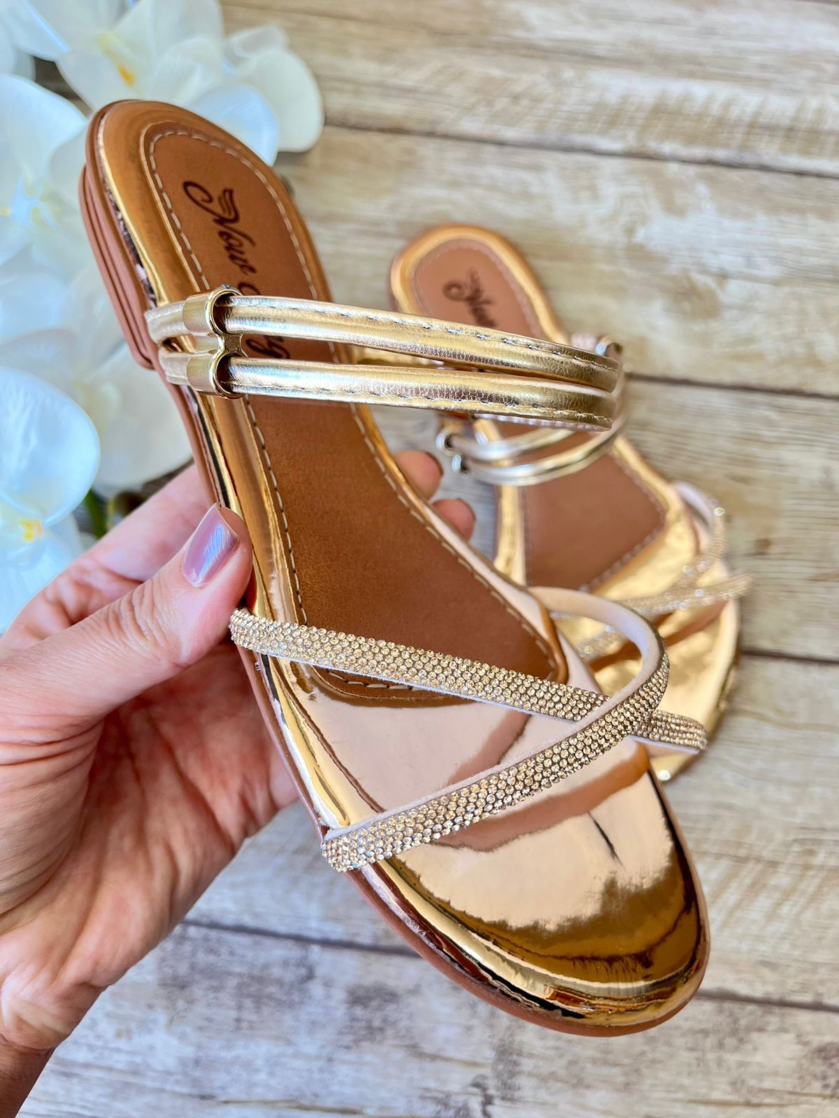 Sandália Rasteirinha Feminina Com Strass Luxo na Frente no Atacado