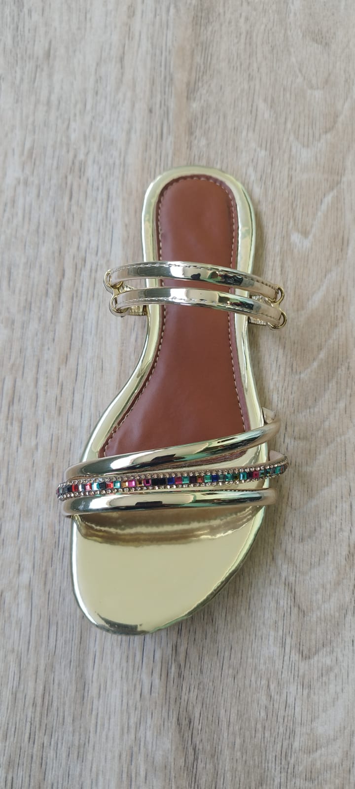 Sandália Rasteira Feminina 2 em 1 no Atacado com strass pedrinha colorida