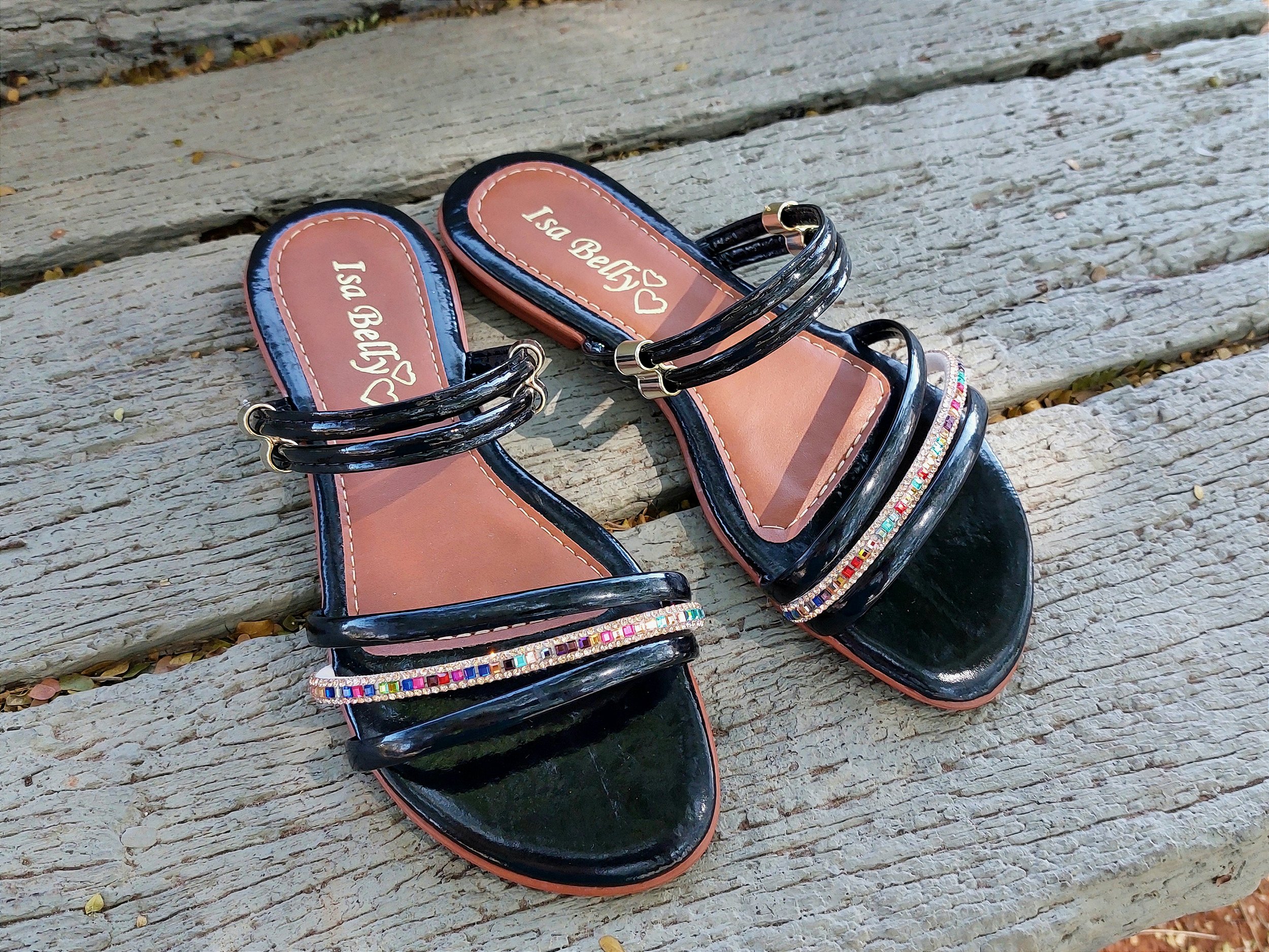 Sandália Rasteira Feminina 2 em 1 no Atacado com strass pedrinha colorida